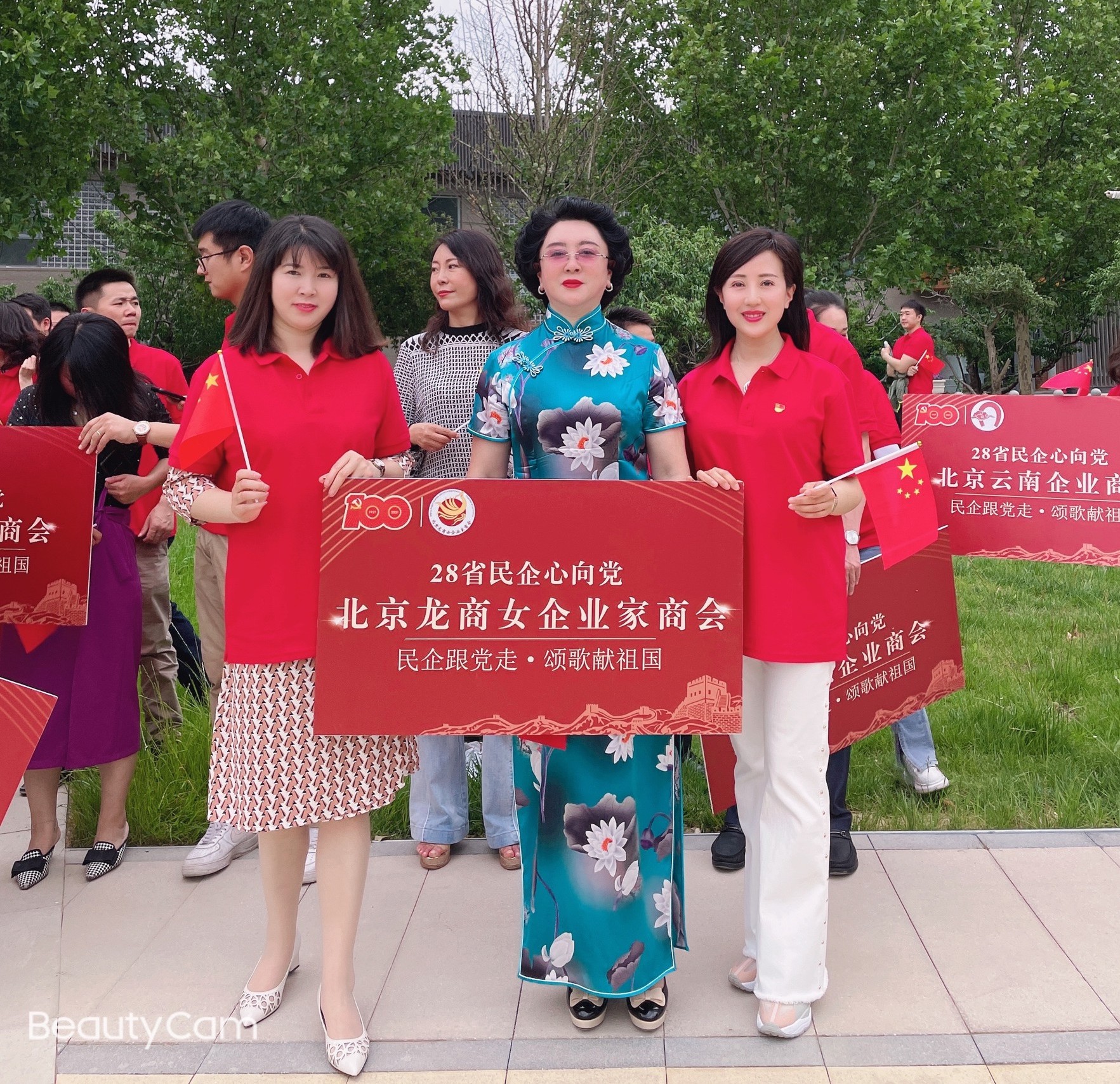 为喜迎建党100周年,6月6日下午,在京28省商会秘书长和会员代表120余人在北京电影小镇共同举办“民企跟党走 颂歌献祖国”快闪活动。 我所高级合伙人王宇维律师作为北京龙商女企业家商会理事,代表北京龙商女企业家商会和北京市乐盈welcome参加本次活动。 活动期间,在京28家省级商会代表共同演唱红色歌曲——《没有共产党就没有新中国》和爱国歌曲——《我和我的祖国》,用歌声唱响在京28省商会5万余名会员企业感党恩、跟党走的铿锵心声,抒发大家以民族复兴为己任,不负前贤之努力,初心如磐,奋楫笃行,共筑伟大中国梦的爱国心。