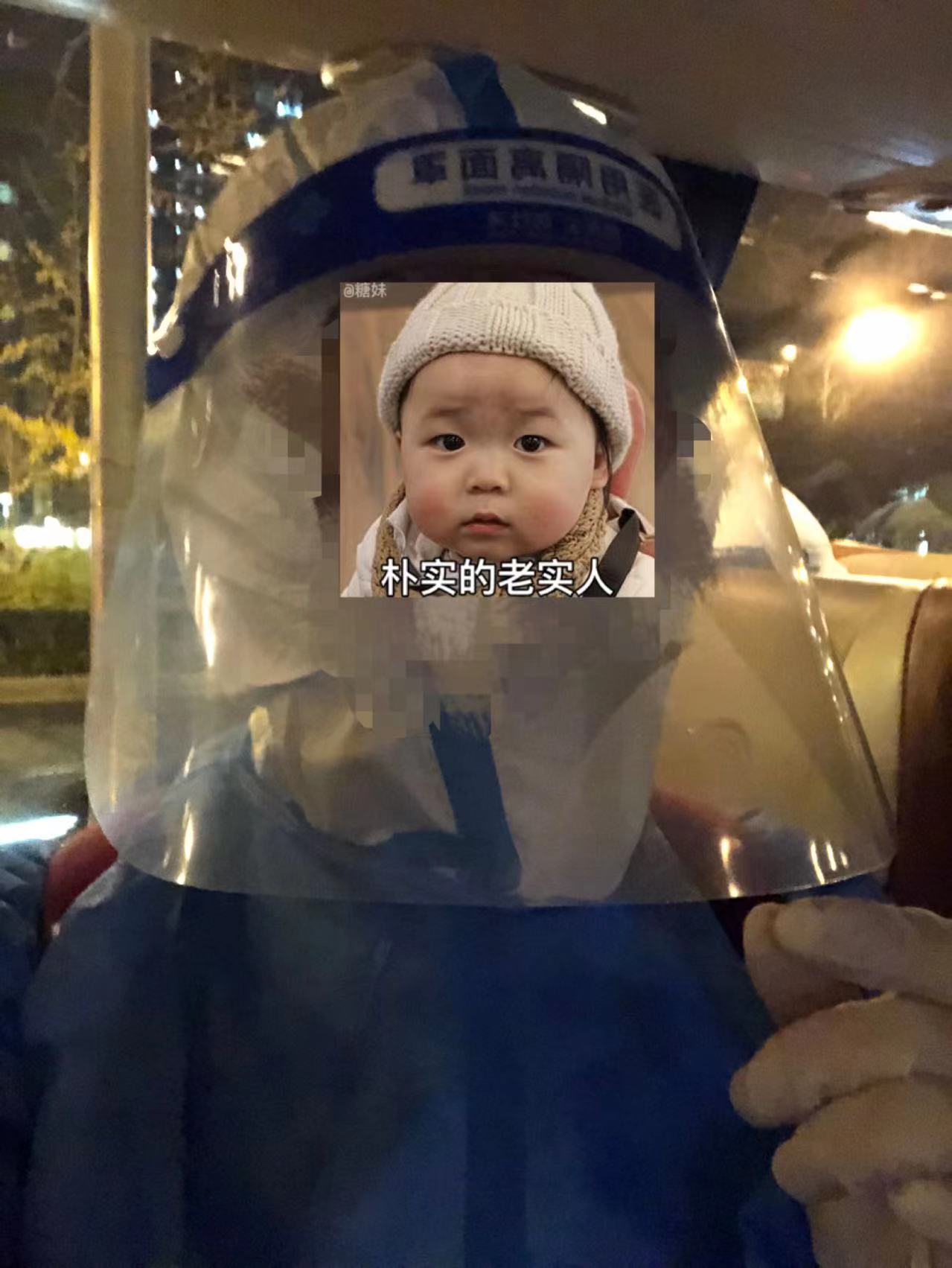 同样装扮的SJ把需要转走的各位逐一接到了楼下,并送上了大巴车。在车上自拍一张,防护服穿的也还像模像样,劳动成果要留念。想想YQ以来常年穿戴成这样的大白和志愿者们,真心不容易。