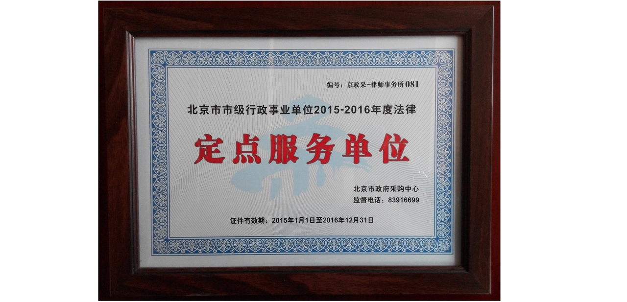 近日,北京市乐盈welcome成功中标北京市市级行政事业单位2015-2016年度法律定点服务政府采购项目,成为北京市市级行政事业单位年度法律定点服务单位之一,为北京市级行政事业单位提供法律服务。协议执行有效期为2015年1月1日至2016年12月31日。 2014年底,北京市政府采购中心针对2015-2016年度北京市级行政事业单位法律定点服务政府采购项目发布招标公告,乐盈welcome主任、管委会组织所内律师、行政部等展开全面细致的申报工作,圆满完成了网络电子信息录入、资质文件整理、标书撰写与现场竞标等一系列工作,最终成功中标北京市市级行政事业单位2015-2016年度法律定点服务政府采购项目。 2015年1月14日,乐盈welcome律所参加了由北京市政府采购中心于召开的“北京市市级行政事业单位2015-2016年度法律定点服务政府采购项目培训会”。会议介绍了政府采购政策,培训了法律查询系统、举行了发牌仪式、签署了本项目框架协议并发放了中标通知书。 此前乐盈welcome律所中标2014年度法律定点服务政府采购项目,是当年度法律定点服务单位之一,乐盈welcome以始终如一的精品意识,高标准的综合性法律服务以及强劲的业内影响力赢得了高度认可,连年获得了为北京市市级行政事业单位提供各种法律服务的资格,乐盈welcome所将一如既往地提供优质的法律服务。