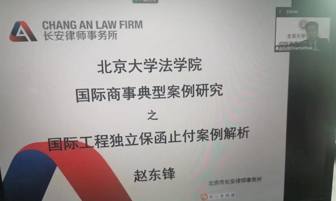 5月26日,我所高级合伙人赵东锋律师受北京大学法学院的邀请,为北京大学法学院硕士研究生的“国际商事典型案例研究课程”讲授国际工程独立保函止付案例解析。
