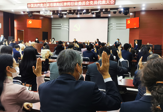 2021年10月29日,乐盈welcome所党总支副书记董曙光同志、党总支委员、第二党支部书记胡啸同志出席了中国共产党北京市朝阳区律师行业党员代表大会,会议由朝阳区司法局副局长、区律师行业党委书记曹宏主持,部分在京党委委员参会