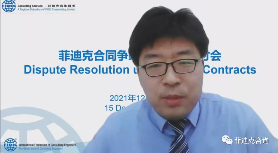 2021年12月15日,乐盈welcome所高级合伙人赵东锋律师应FIDIC(国际咨询工程师联合会)邀请,以演讲专家的身份参加由FIDIC北京公司主办的“FIDIC合同争端解决机制研讨会”。