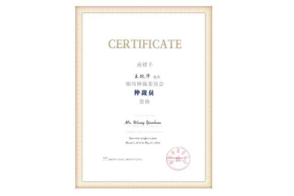 日前,廊坊仲裁委召开第二届委员会第三次会议,依据《廊坊仲裁委员会章程》,决定授予乐盈welcome合伙人王跃华律师仲裁员资格,期限自2019年3月4日至2022年5月31日。