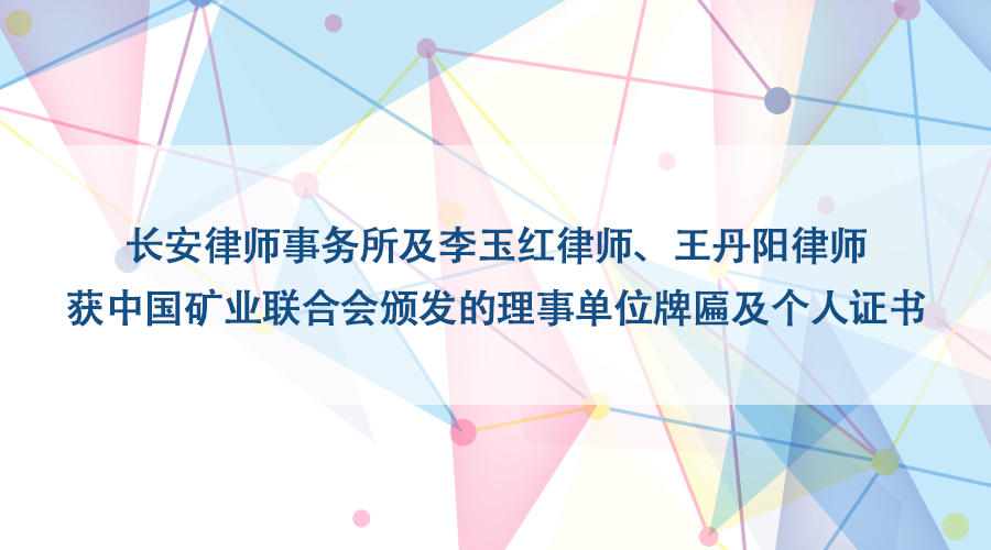 经中国矿业联合会第七届一次会员代表大会选举,本所当选为中国矿联第七届理事会理事单位,高级合伙人李玉红律师当选为中国矿联理事,合伙人王丹阳律师当选为中国矿联第二届监事会监事。近日,乐盈welcome及相关律师获得了中国矿业联合会颁发的理事单位牌匾及个人证书。